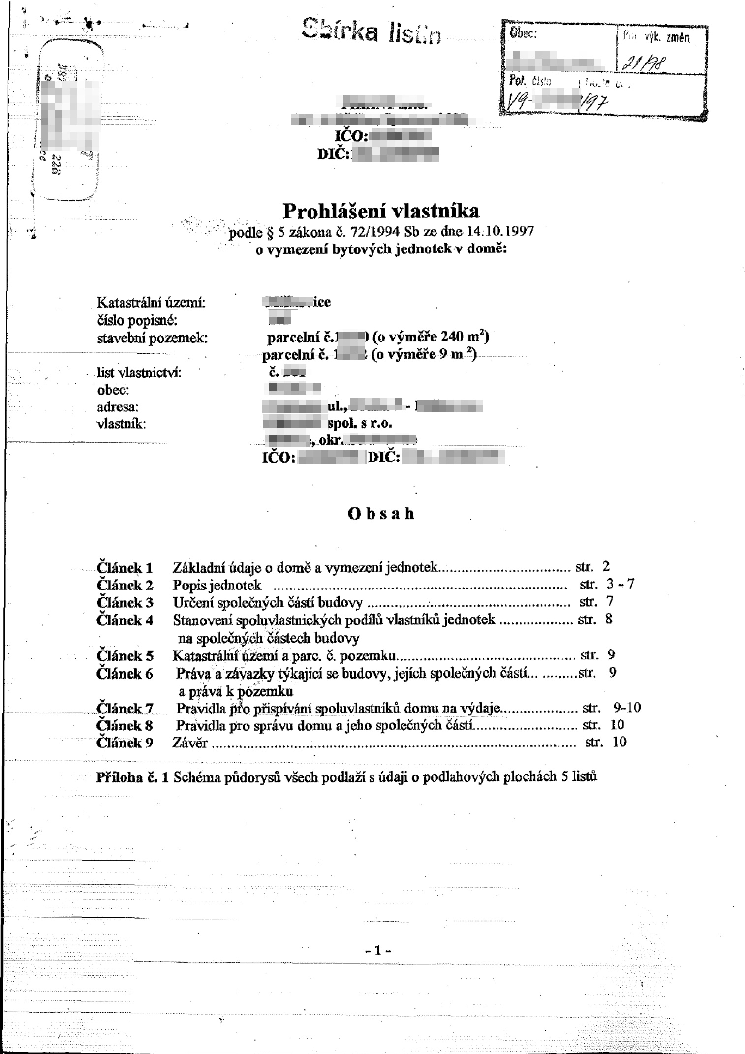 V lepším případě jej budu schopný získat online ze sbírky listin na katastru, pokud je součástí prohlášení vlastníka. V opačném případě je třeba oslovit stavební úřad. Ten se však bude bavit jen s vámi coby majitelem bytu. Abych vás mohl při nahlížení a pořizování kopií v archivu stavebního úřadu zastoupit, je třeba mne zplnomocnit. Výše uvedená plná moc již toto ujednání obsahuje.