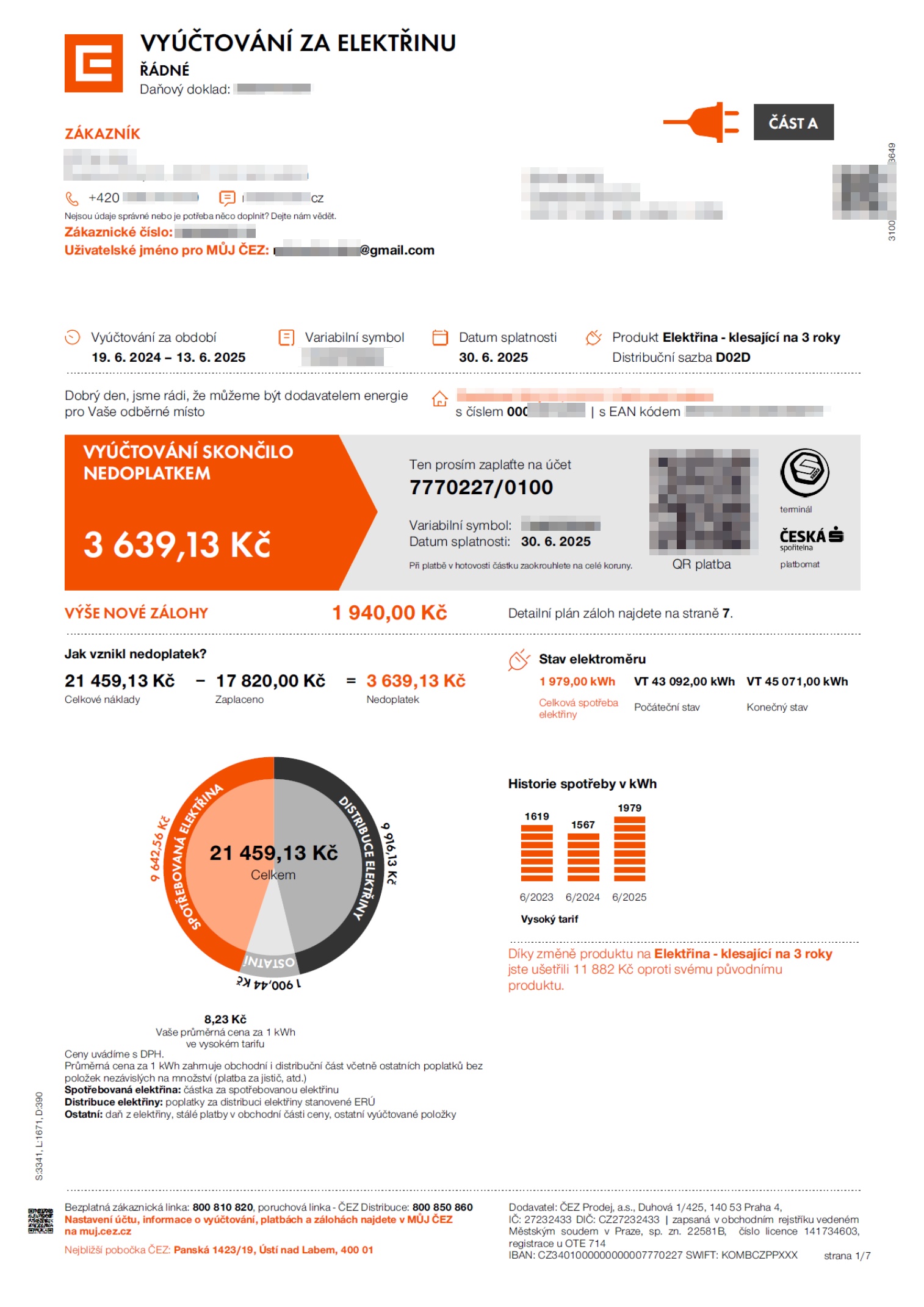 Ať už odebíráte elektřinu a případně plyn od kterékoliv společnosti, každoročně Vám zasílá zúčtování na základě odečtů (případně samoodečtů). Ze zúčtování je patrná nejen roční spotřeba dané komodity, což pochopitelně zajímá každého zájemce o koupi, ale také v něm jsou údaje potřebné pro budoucí převod odběrného místa na nového vlastníka po úspěšném prodeji. Jde zejména o číslo odběrného místa, číslo elektroměru, EAN kód a další údaje, které budeme potřebovat.