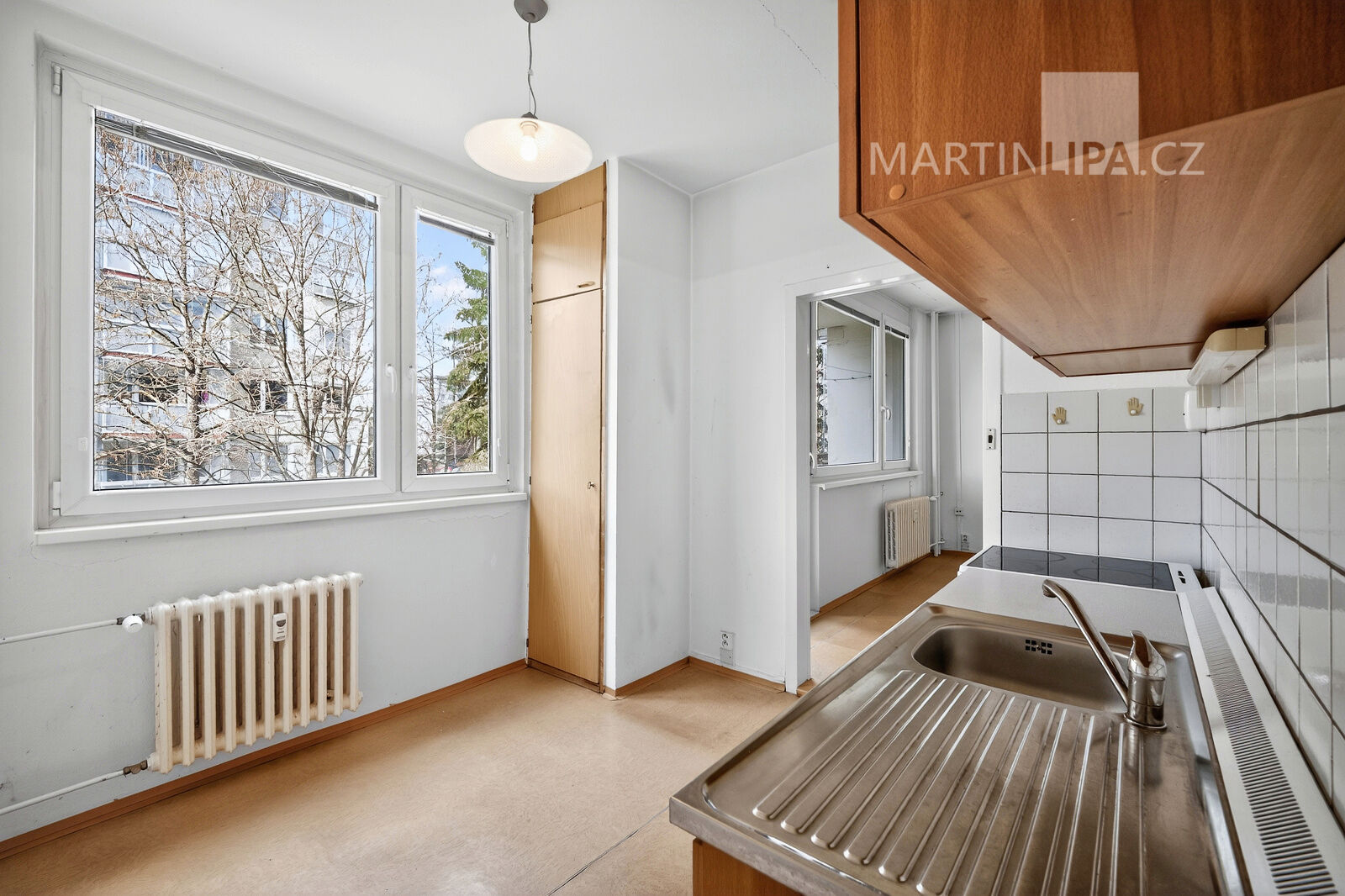 Tady máte příjemně čisté plochy, logické napojení místností a hodně světla. Obývák je největší pokoj s přímým vstupem na lodžii, další dva pokoje se hodí jako ložnice a dětský pokoj/pracovna. Kuchyň je samostatná a je přístupná jak z obýváku, tak i „obíhačkou“ z předsíně. Při rekonstrukci tedy můžete kuchyň ponechat odděleně, nebo ji otevřít a udělat z ní součást moderního obýváku.
