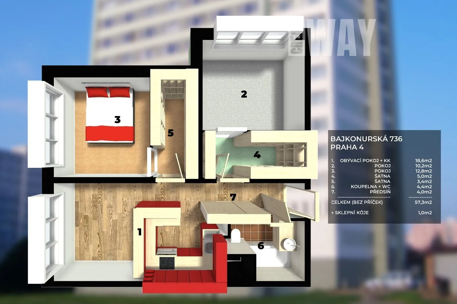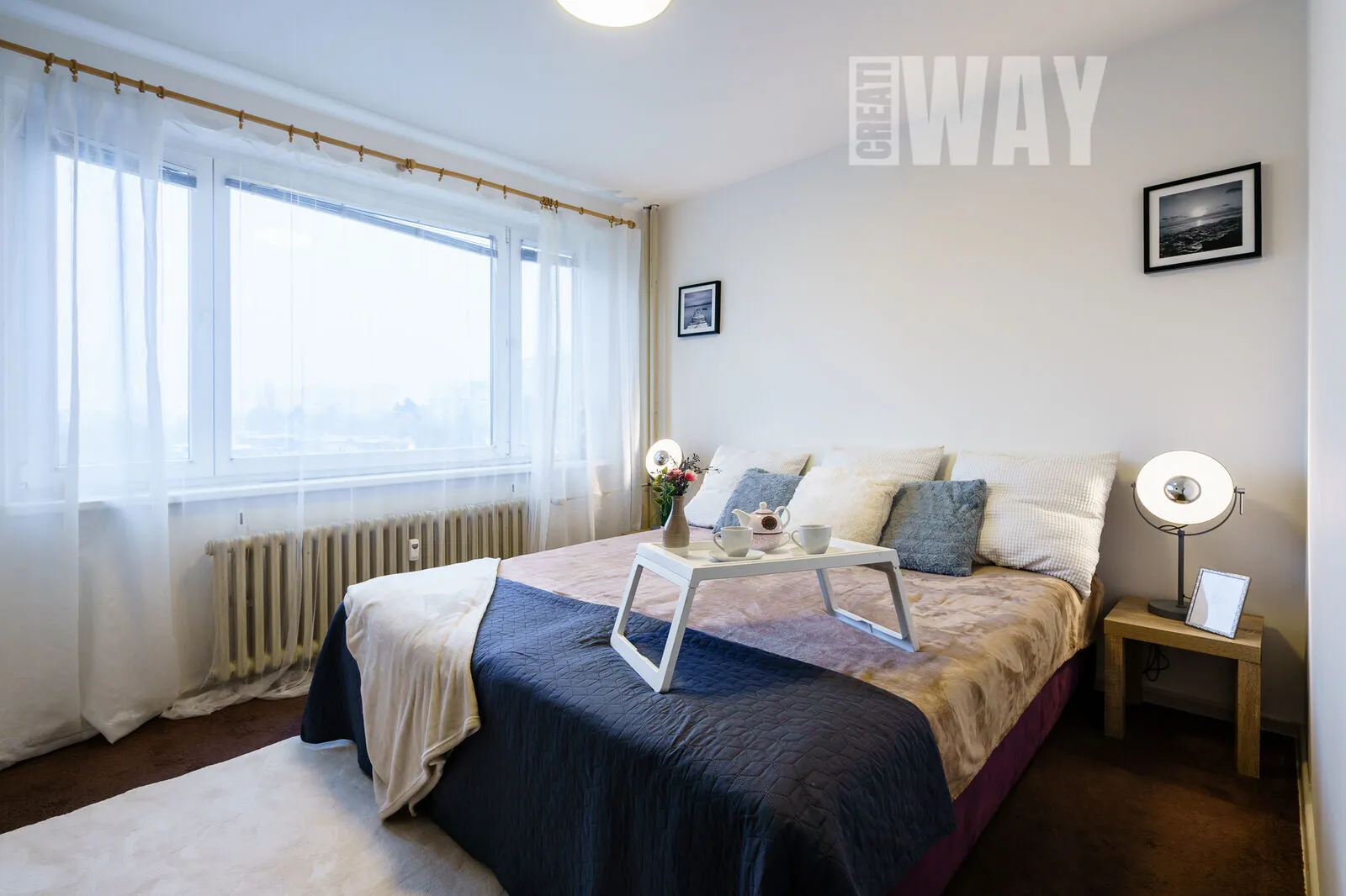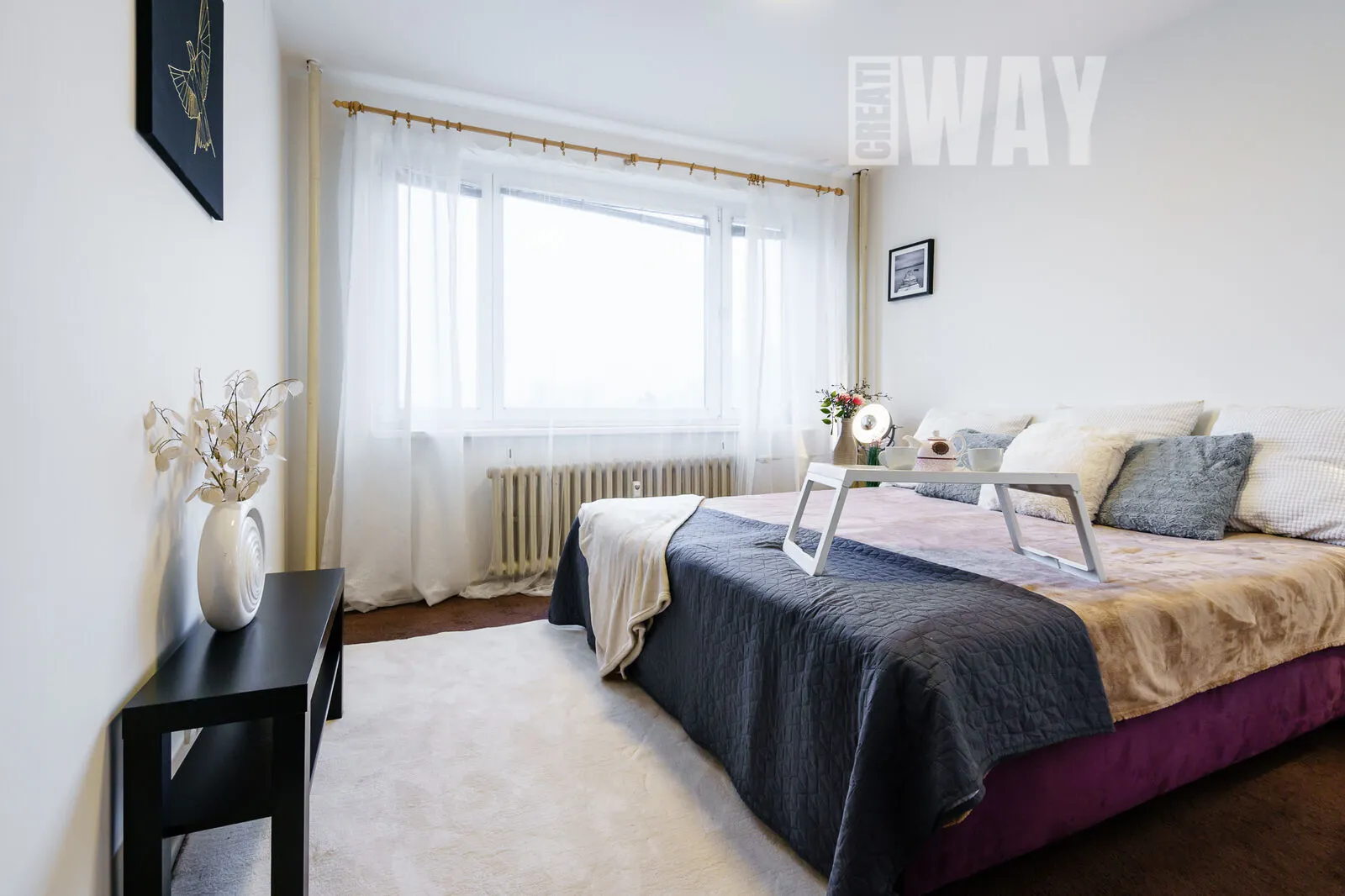 Když se podíváte z okna tohoto 58m2 velkého bytu, uvidíte Háje. A to jak sídliště Háje, tak hlavně metro Háje – blíž k němu už totiž bydlet skoro nejde. Hned vedle domu ja malé parkoviště a v okolí spousta garážových domů k pronajmutí. Obchody, restaurace, úřady, banky, poštu či Alzu ani není třeba zmiňovat – kdo hledá bydlení na Jižním městě, tak moc dobře, ví, že je tu vše.