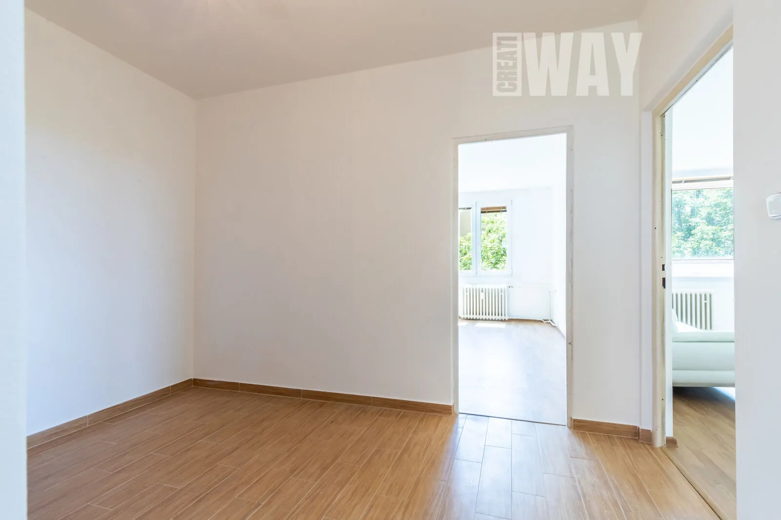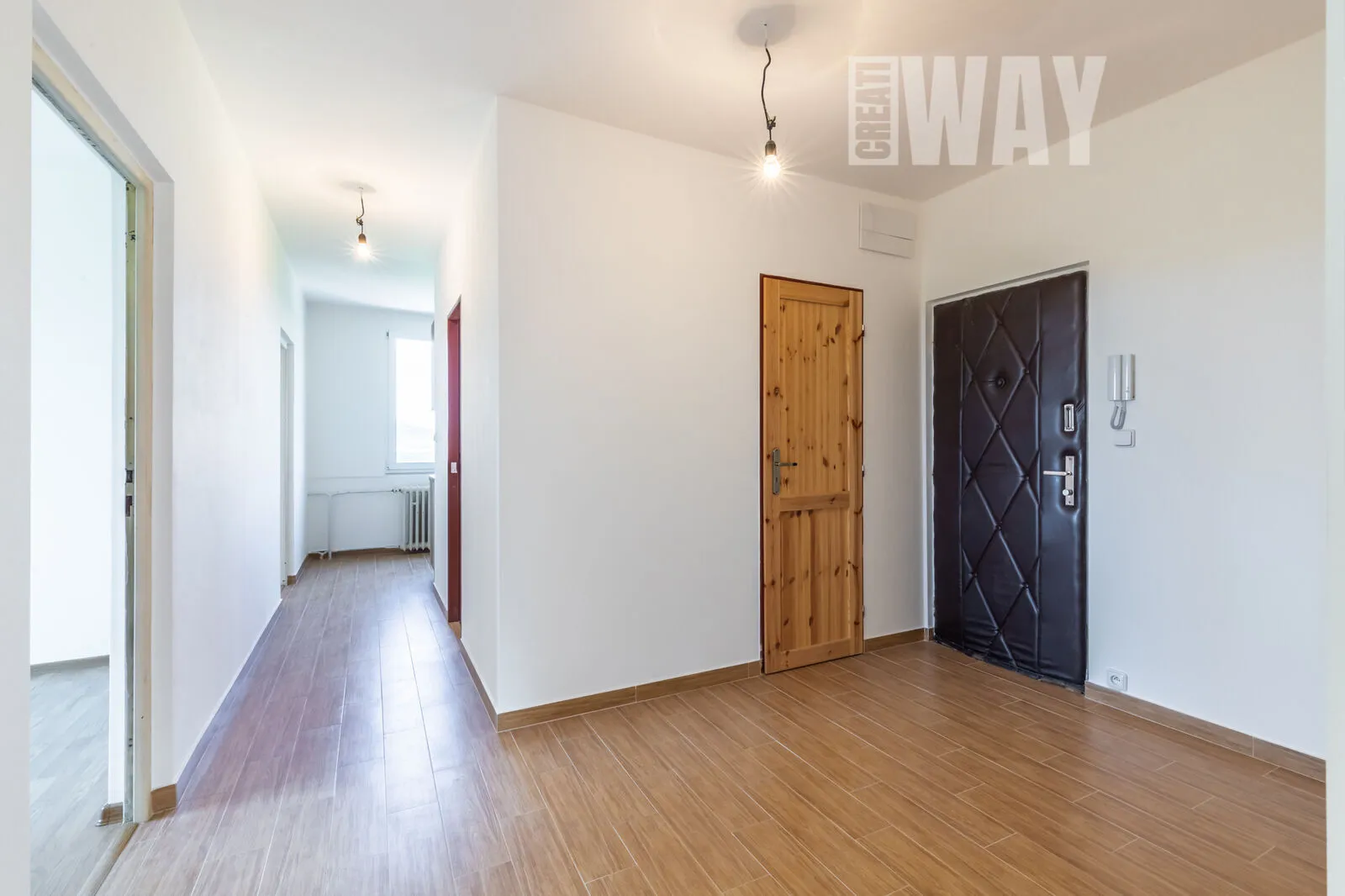 Všude je položena nová krytina, ve většině prostor plovoucí podlaha a v kuchyni a sanitárních místnostech dlažba. Kuchyň je opatřena moderní linkou se spotřebiči. V největší z ložnic je podél celé jedné stěny vybudována vestavěná šatní skříň s posuvnými zrcadlovými dveřmi.