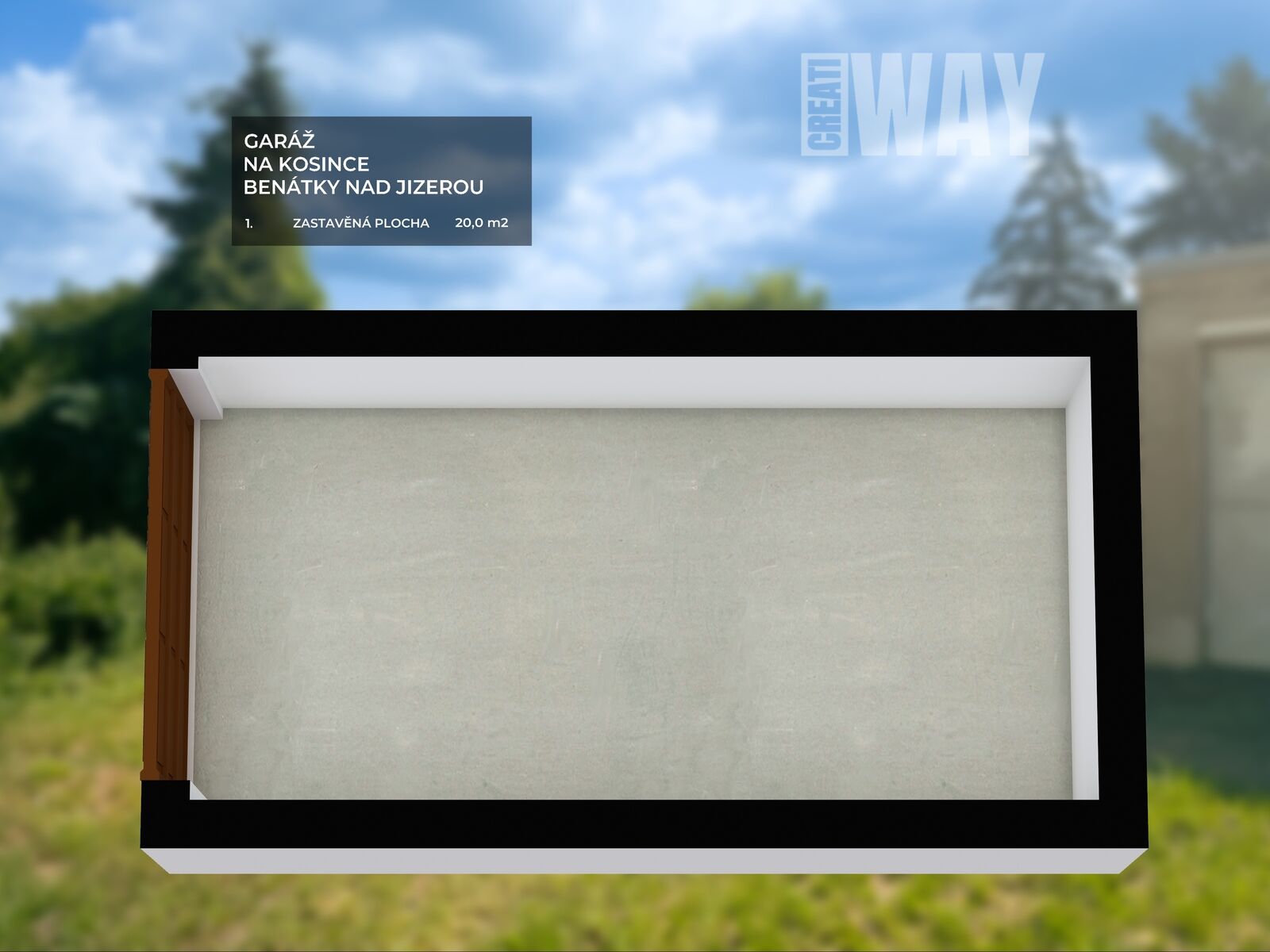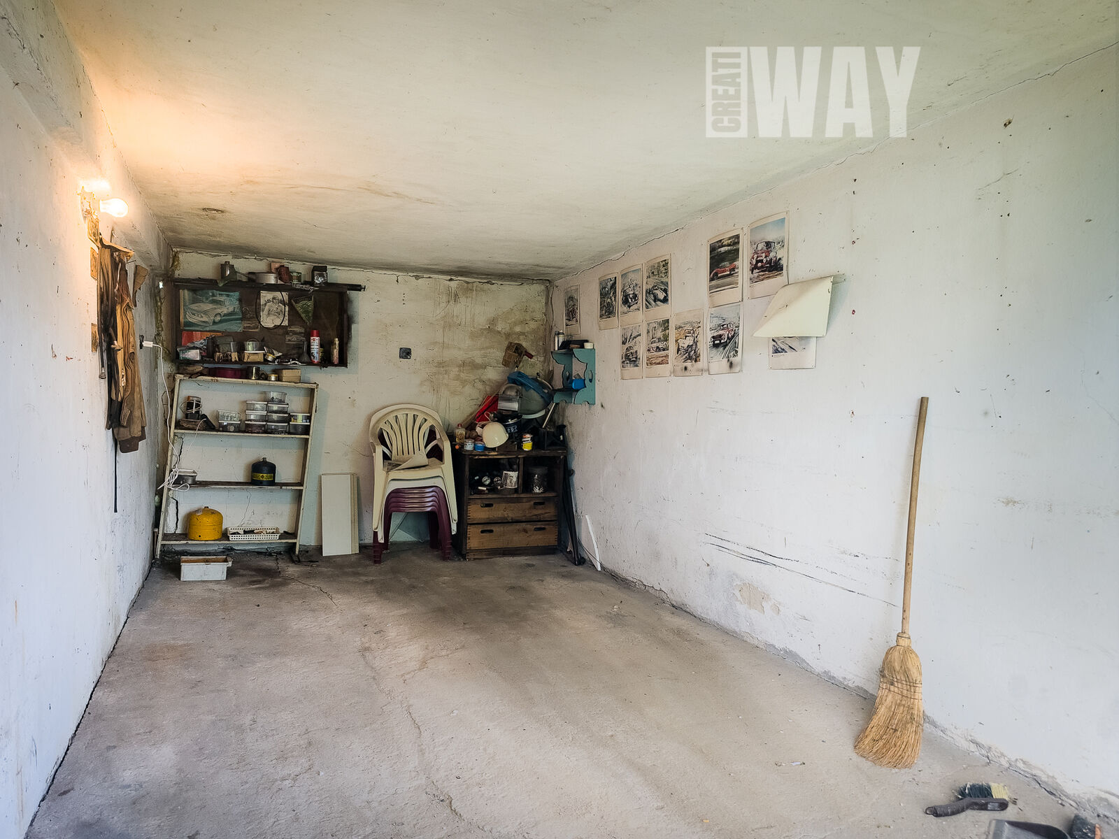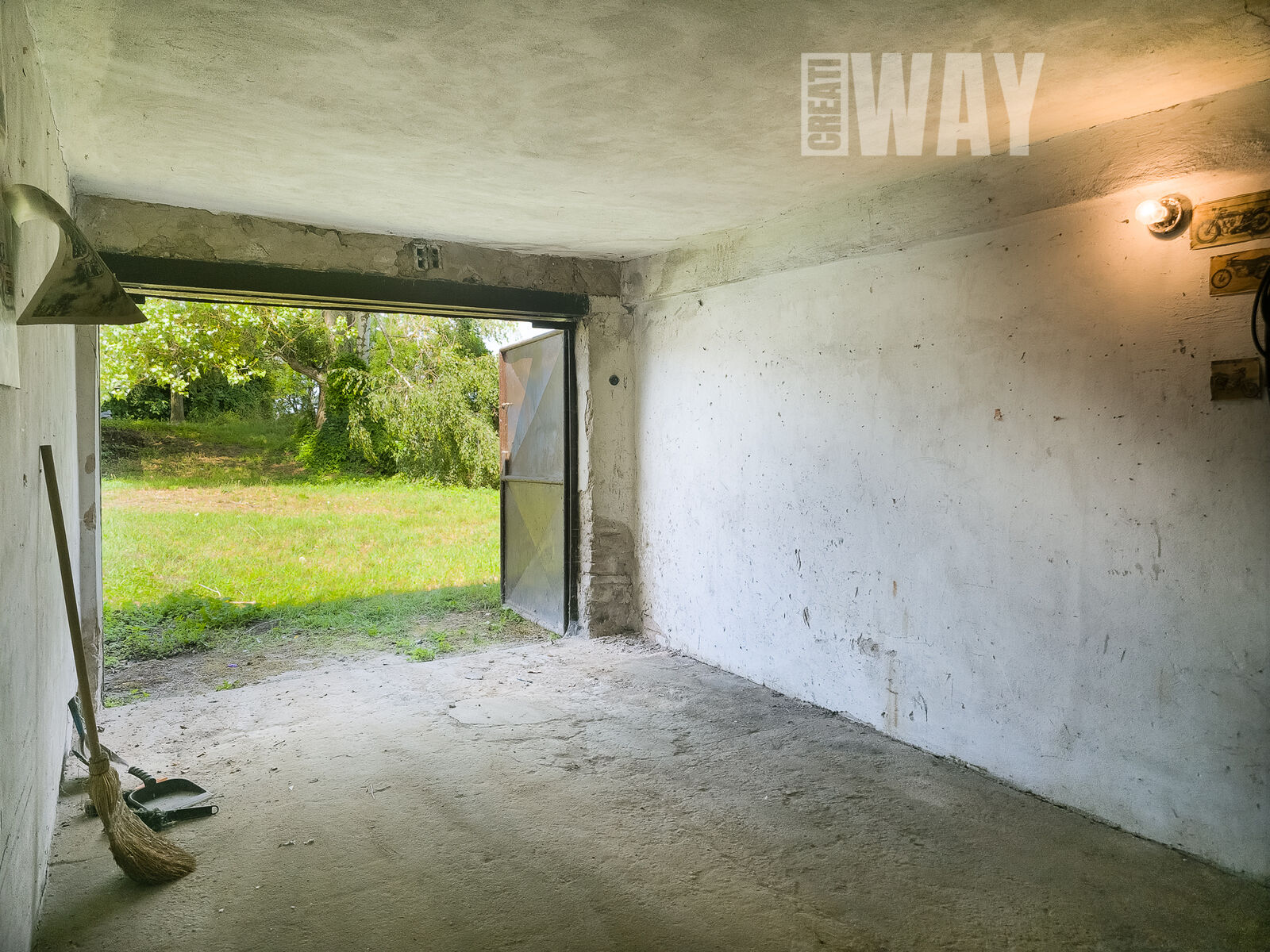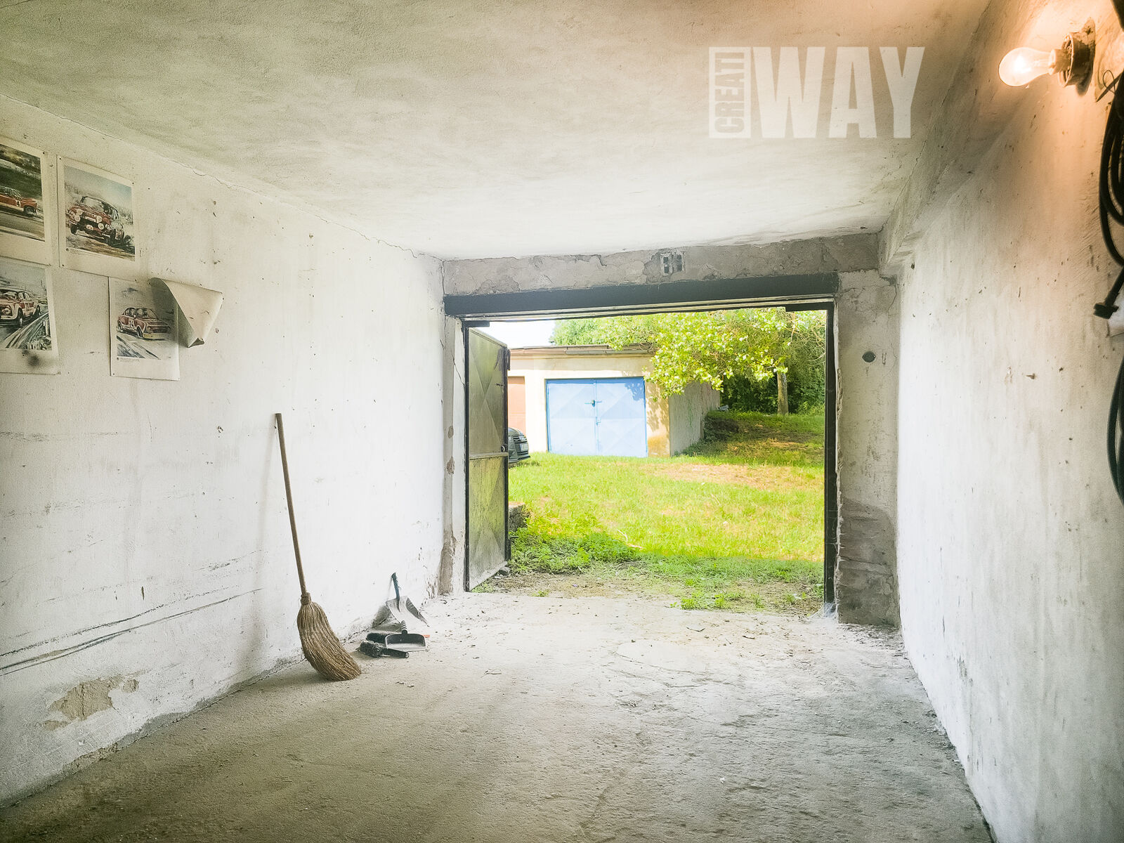 Celková zastavěná plocha garáže činí 20 m², takže se do ní vejde i auto. Případně v ní můžete přespat, pokud vás žena nepustí domů. Je tady světlo i zásuvka s 230V, takže si můžete uvařit kafe nebo dobít mobil. Dobové plakátky starých aut na zdi jsou v ceně a koště na vymetání pavučin také.