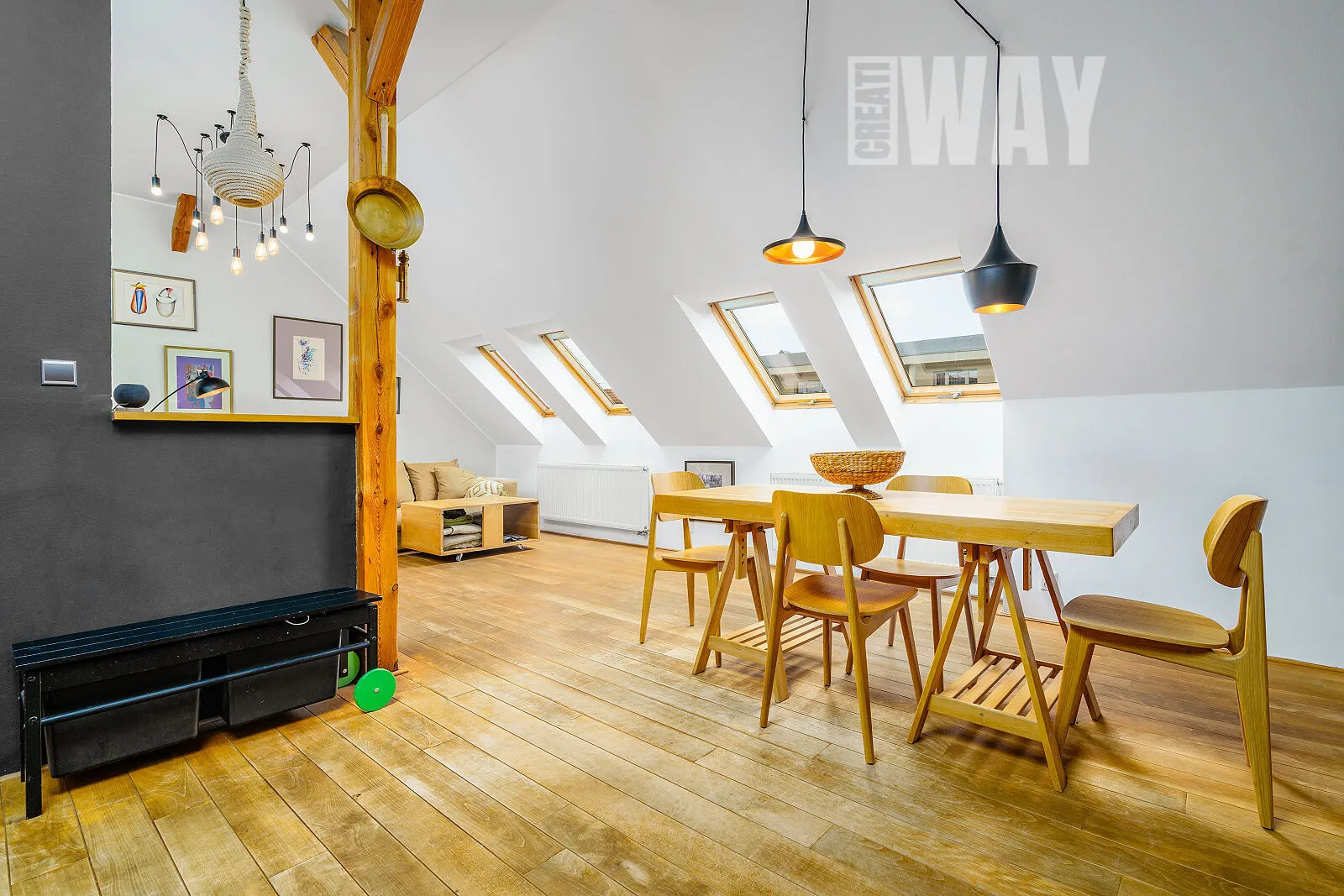 Bydlení v Dejvicích bylo, je a vždy bude o stylu, atmosféře a takovém tom specifickém duchu této městské části. A když pokukujete po mezonetovém podkrovním bytě v Koulově ulici, je jasné, že právě tohoto ducha hledáte. Tady ho rozhodně najdete, tak se s ním pojďte trochu blíž seznámit.