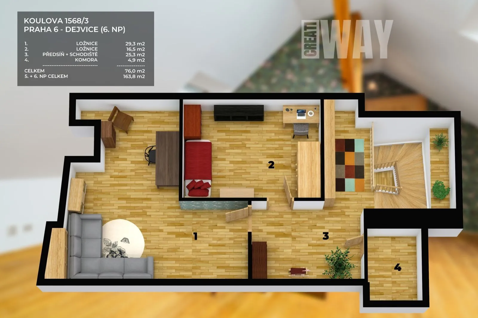 Byt má celkovou plochu 163,8 m2 a každý centimetr z něj budete milovat.