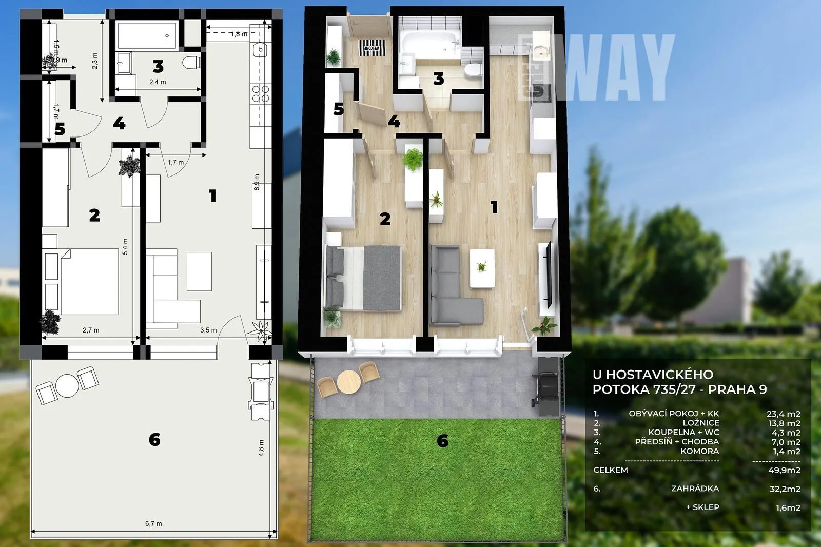 U Hostavického potoka: 2kk s vlastní zahrádkou