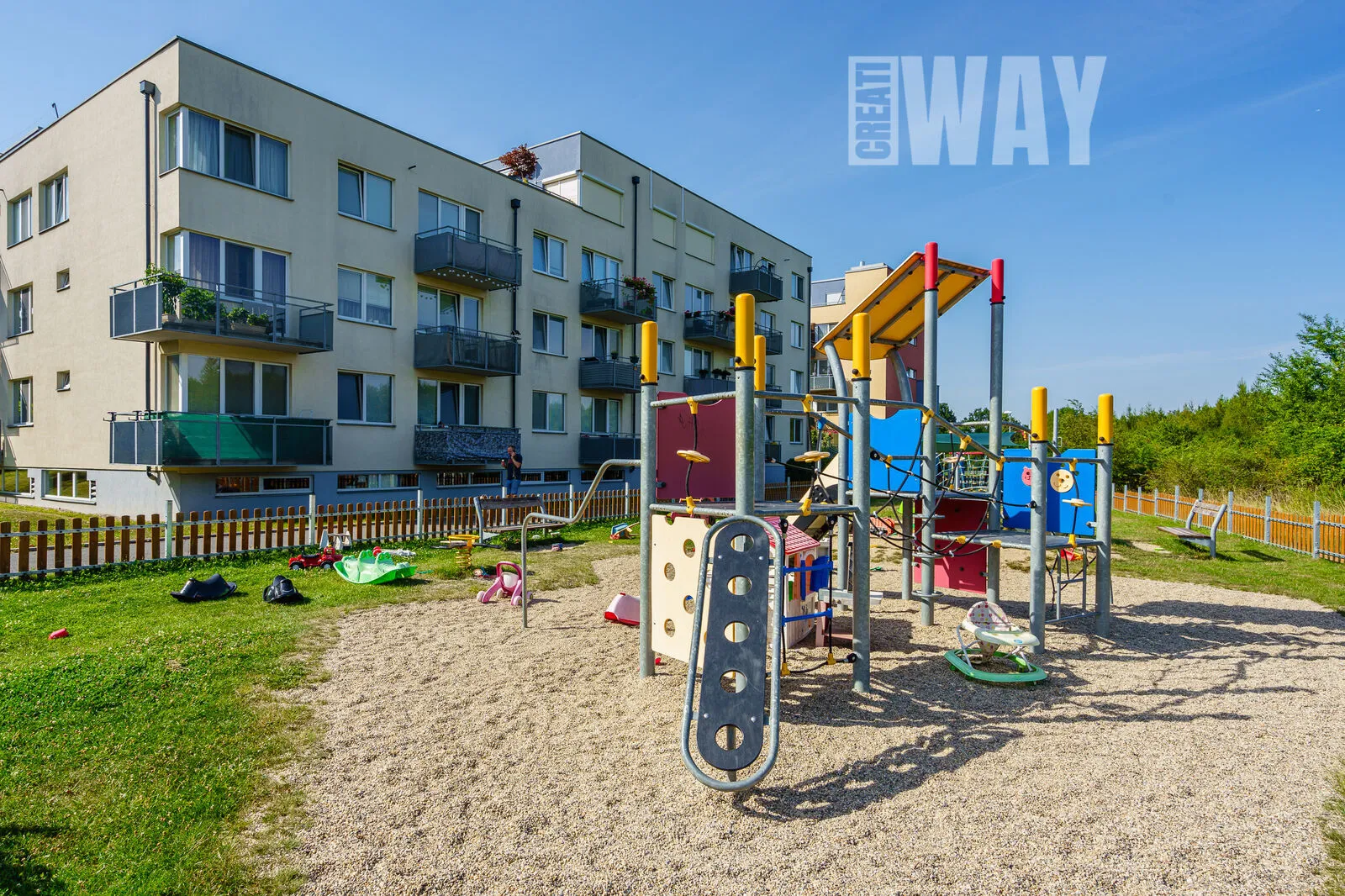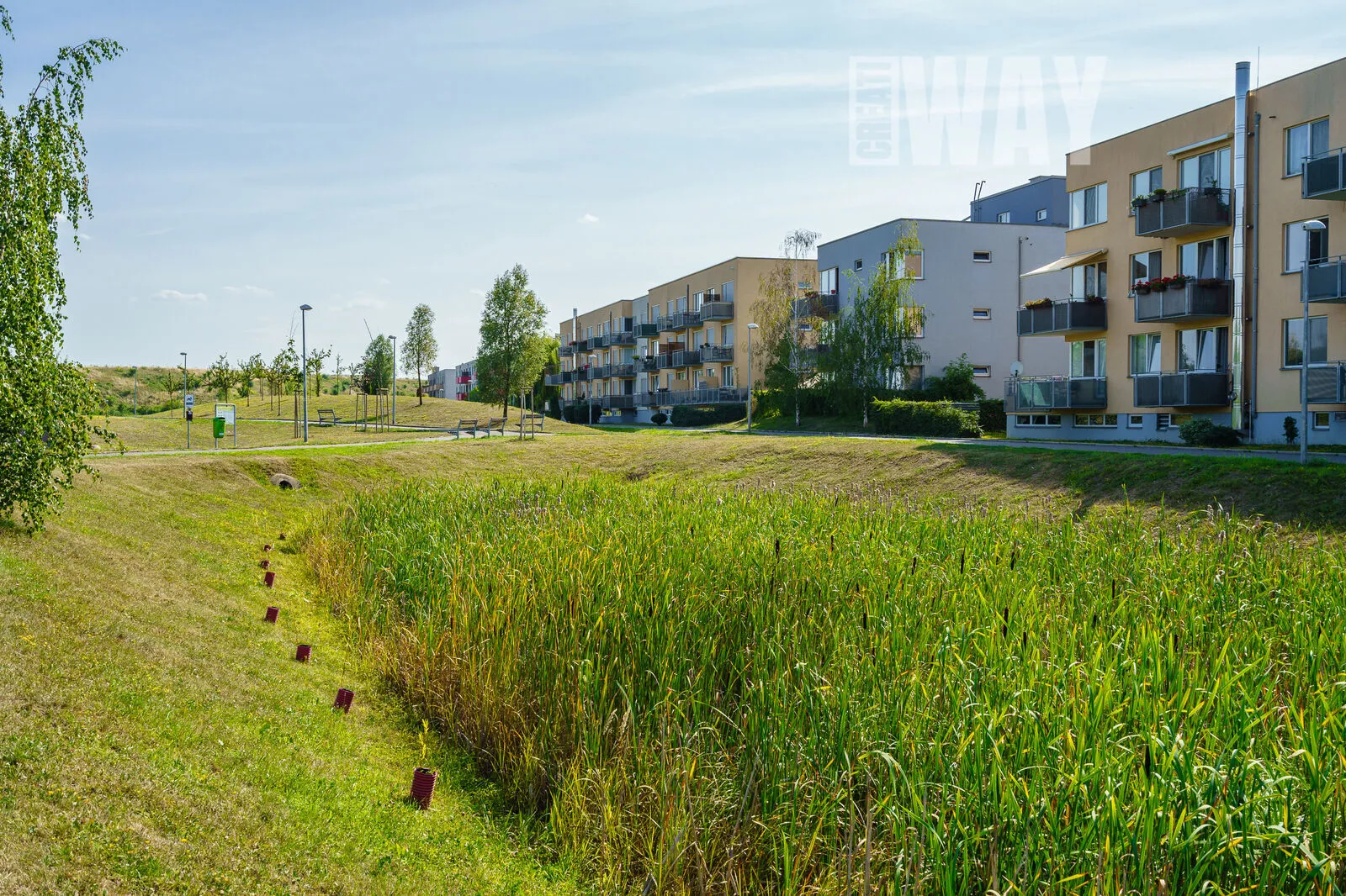 Je fajn, že to Skanska nepřehnala s velikostí domu. Třípatrové budovy jsou tak akorát, aby zdejší infrastuktura zvládla pohodlně pokrýt potřeby obyvatel. Domy samotné jsou dobře promyšlené – od velkých bezbariérových vstupních dveří do bytu až po pečlivě navržené rozložení bytů v domě, které zajišťuje, že si obyvatelé nekoukají přímo do oken. Vážně, nebudete koukat sousedům do talíře a oni vám také ne.
